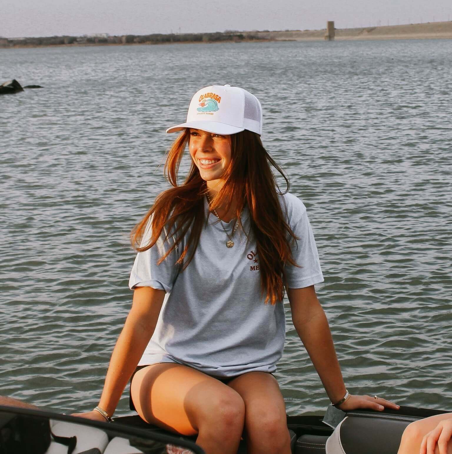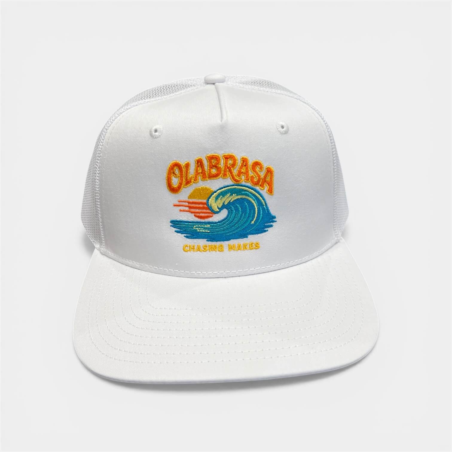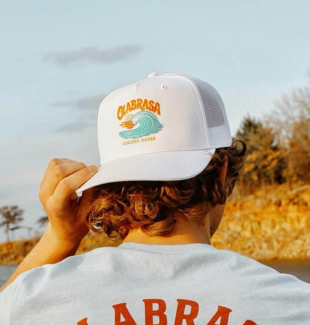 From the water to wherever the day takes you. This trucker hat features a breathable mesh back, structured front, and adjustable snapback for the perfect fit. Topped off with signature Olabrasa artwork.